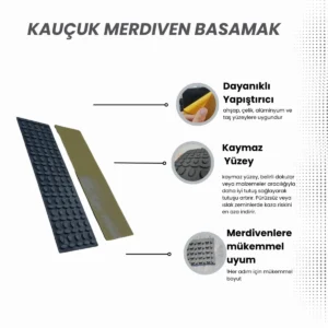 Neden Tercih Etmelisiniz? Bu kauçuk merdiven basamağı seti, merdivenlerinizi güvenli hale getirirken estetik görünümünü de bozmadan şıklık katar. Hem evde, hem ofiste hem de iş yerlerinde kullanıma uygundur. Kolay montajı sayesinde, zahmetsiz bir şekilde uygulama yapabilir, kayma riskini hızlıca ortadan kaldırabilirsiniz.