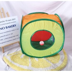 Kediniz için özel olarak tasarlanmış bu renkli oyun çadırı, hem oyun hem de saklanma alanı sunar. İçinde bulunan asılı oyuncak top ile kedinizin ilgisini çeker, onu eğlenceli vakit geçirmeye teşvik eder. Dayanıklı kumaş yapısı ve renkli tasarımıyla evinizde şık bir kedi aksesuarıdır. Kurulumu ve saklaması kolay olan bu çadır, kedinizin günlük enerjisini atmasına yardımcı olur.